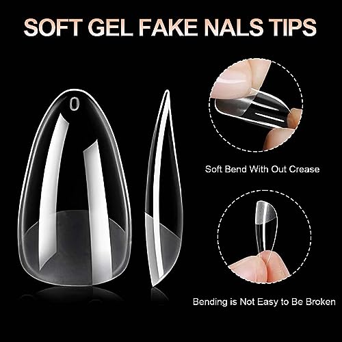 Punte per unghie in gel morbido: le nostre punte per unghie in gel ultrasottili e comode sono perfette per allungare delicatamente le unghie naturali, possono creare unghie più lunghe e ultra stabili, la forma può essere accorciata e limata secondo necessità.