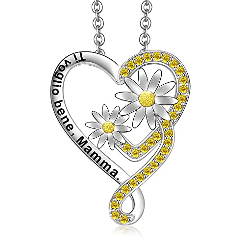 UNGILA Collana Donna Argento 925 Ciondolo Cuore Bouquet di Margherite con Incisione Regalo per Mamma Nonna