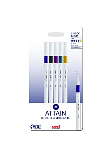 Uni-Ball On Point Attain, EMOTT - Confezione da 5 penne colorate, viola, verde kaki, ametista, blu, verde e giallo paglierino
