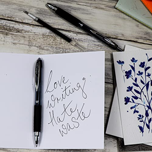 Queste penne contengono l'inchiostro Super Uni-ball, che rende l'inchiostro resistente all'acqua, allo sbiadimento e a prova di manomissione.