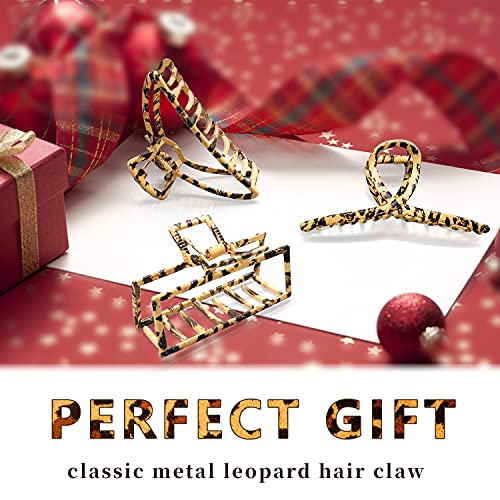 Uni-Fine 3Pezzi Clip di Artiglio Metallo,Fermagli per Capelli,Pinza per Capelli in Metallo Marrone con Stampa Leopardata,con Morsetto Antiscivolo per Capelli,Accessorio Elegante per Ragazze e Donne
