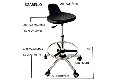 Uni-form Sgabello Regolabile Cromato con Sedile in pulioretano - Pompa a Gas -Anello Regolabile -Ruote gommate +Kit Piedini,Altezza Minima del Sedile 62 Centimetri -Altezza Massima 86 Centimetri