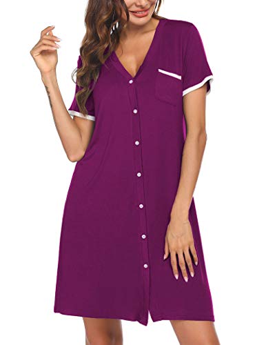 UNibelle - Camicia da Notte da Donna, con Bottoni, a Maniche Corte, Estiva - Viola XL