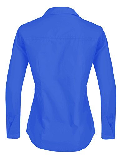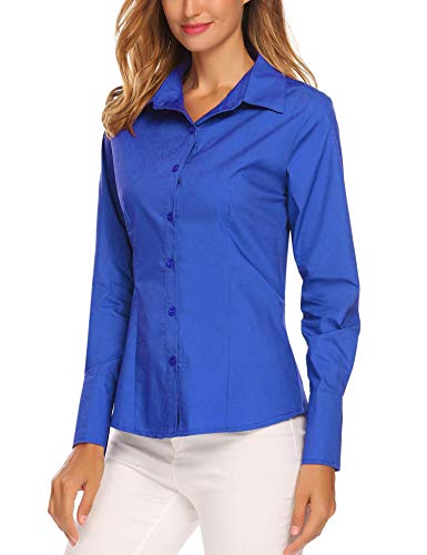 UNibelle Donna Camicia Basic con Scollo a V Sciancrata, a Maniche Lunghe, da Lavoro, Elegante Camicia Bianca con Tinta Unita Blu Zaffiro XL
