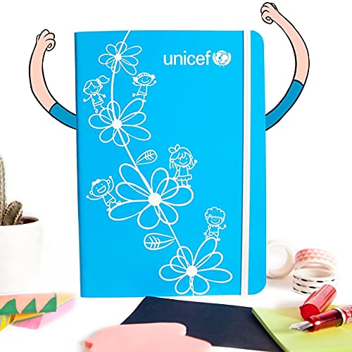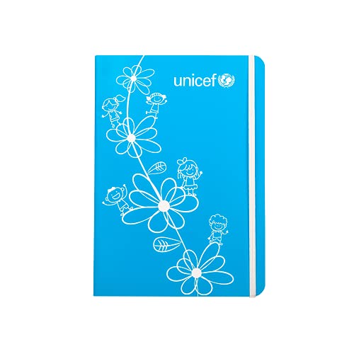 Unicef - Quaderno con copertina flessibile solida, interno liscio, 16 x 22 cm, fiori blu
