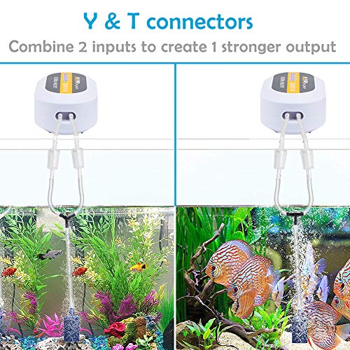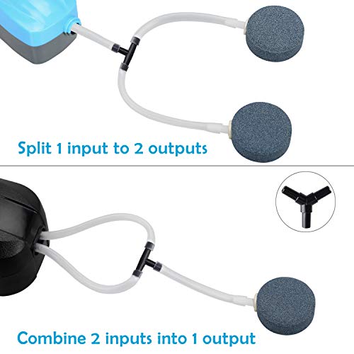 Le connessioni a Y e T possono dividere il tubo dell'aria per eseguire una seconda pietra porosa dalla stessa pompa. È inoltre possibile combinare due ingressi per un'uscita più forte da utilizzare con pompe a più uscite.