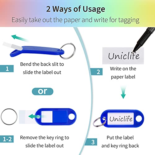 Uniclife 20 pezzi Etichette portachiavi 5 cm in plastica con etichette di carta Pellicole protettive trasparenti per finestre e anelli divisibili Identificatori di oggetti flessibili, 6 colori