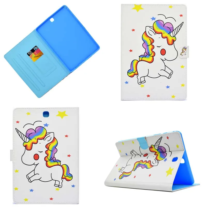Cute Unicorn Flower Butterfly Case for Samsung Galaxy Tab A 9.7 inch SM-T550 T555 P550 P555 PU Leather Wallet Cover