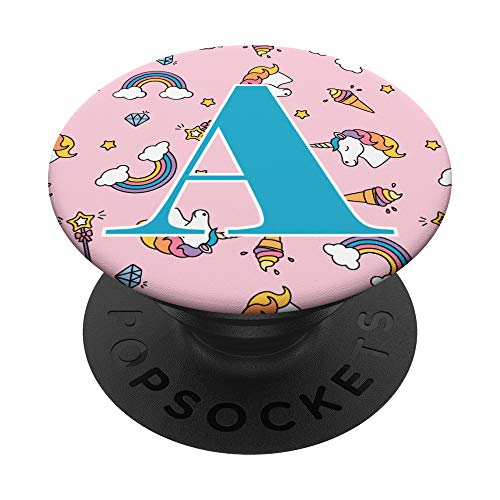 Pink Unicorn Pattern With Teal Letter A Initial PopSockets PopGrip: Impugnatura per Telefoni Cellulari e Tablet Intercambiabile