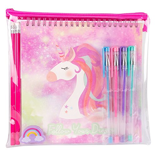 Unicorn 9 Piece Writing Stationery Set Notebook Gel Pens Pencils and Eraser
