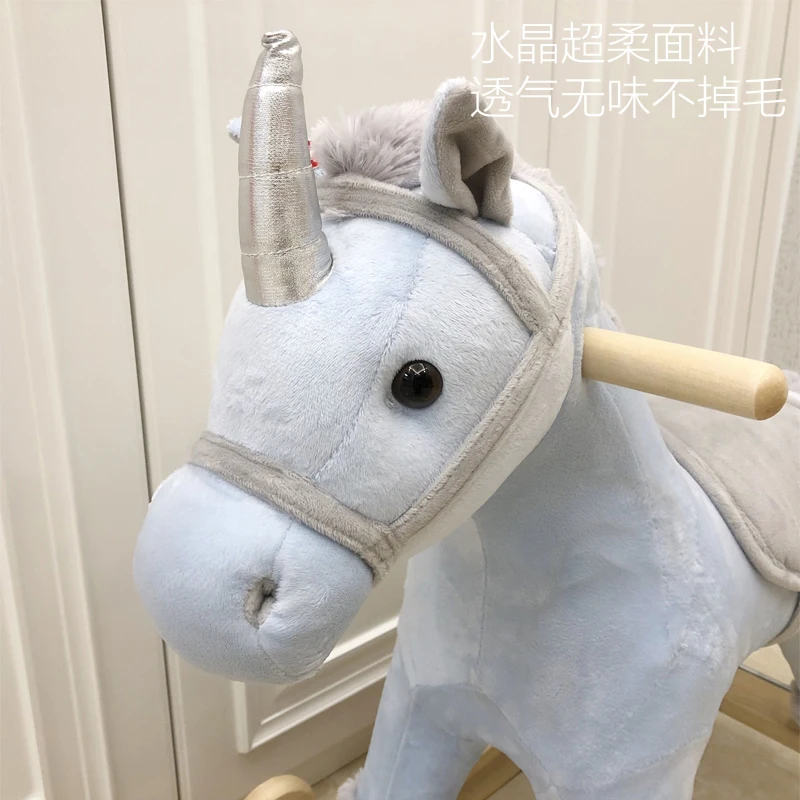 Unicorn trojan with music rocking chair children's educational toys solid wood rocking horse kids furniture chair for kids