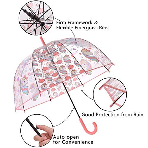 Design Unicorno: il grazioso motivo a unicorno dell'ombrello trasparente unicorno brillerà per te.Se lo dai ai tuoi bambini, gli piacerà molto e regalerà loro un'infanzia meravigliosa.
