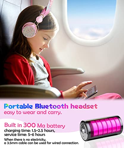 【Efficace Cura Dell'Udito dei Bambini】 Cuffie bluetooth bambina incorporato nel circuito di limitazione del volume mantiene il suono al di sotto di 85dB, che soddisfa perfettamente il livello raccomandato dall'OMS per prevenire i danni all'udito.Non preoccupatevi di danneggiare l'udito del vostro bambino .Cuffie bambina bluetooth può essere regolato in base alle dimensioni della testa del bambino, che è adatto per i bambini di diverse et