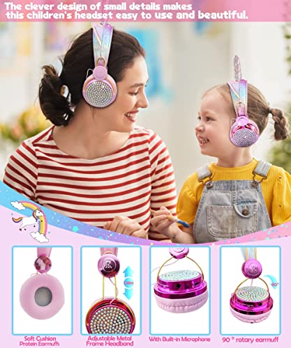 Unicorno Cuffie Bluetooth Bambini con Luci a LED, 85dB Volume Limitato Cuffie Wireless Bluetooth Bambini,Cuffie Bambini Over Ear con Microfono per PC/IPad/Studio/Viaggio Compleanno Xmas Regali