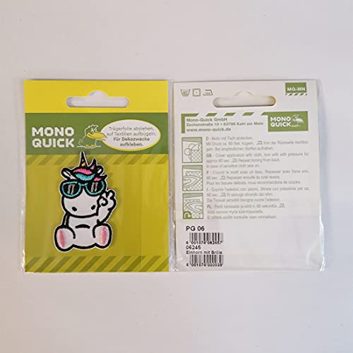 Unicorno con occhiali animale - Toppe termoadesive Patch Toppa ricamate, misura: 2,9 x 4,8 cm