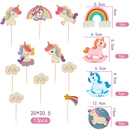 Unicorno Cake Topper Kit - simyron 14 Pezzi Decorazioni Torta Compleanno Arcobaleno Nuvola, Happy Birthday Decorazione Torta Unicorno per Festa Compleanno Ragazzo Ragazza