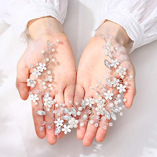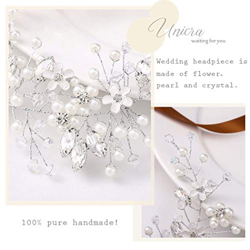 Unicra - Accessorio per capelli da sposa, motivo floreale, argentato, con strass e perline, per donne e ragazze