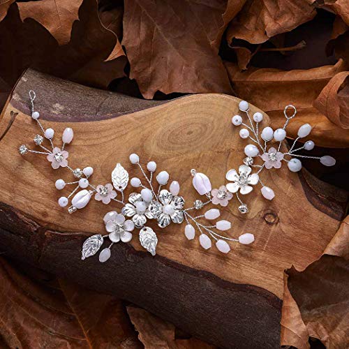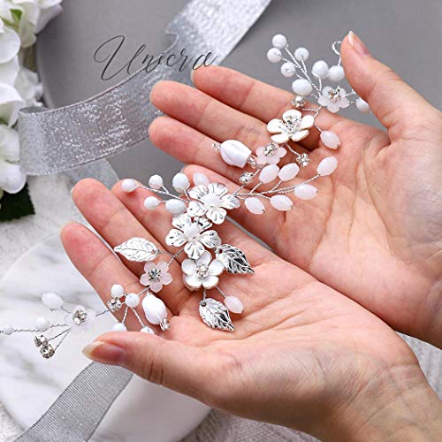 Unicra, Accessorio per capelli da sposa, motivo floreale, argentato, con strass, per donne e ragazze