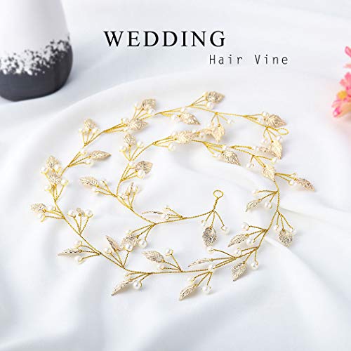 Unicra Bride Wedding Pearl Hair Vines Crystal Copricapi Accessori per capelli da sposa per donne e ragazze (Oro)