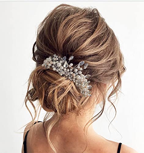 Unicra Cerchietto da sposa con vite, perle e strass, per capelli, in argento, per donne e damigelle d'onore