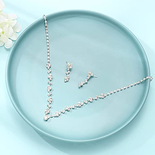 Unicra Set di collana e orecchini da sposa in argento con strass e girocollo da sposa in argento per donne e ragazze (A)..