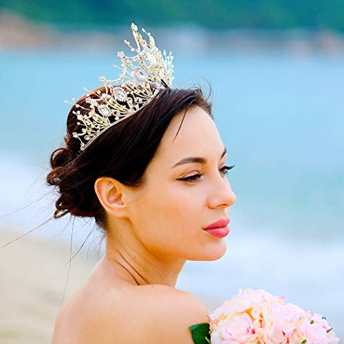Unicra Corona da sposa e diadema con strass e corona in oro per donne e ragazze