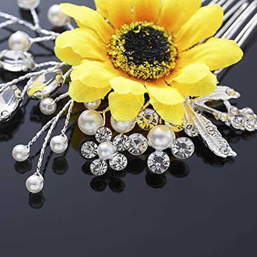 Unicra - Pettine per capelli da sposa, con cristalli di girasole, accessori per capelli da sposa, per donne e ragazze