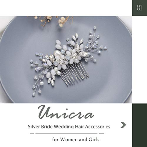 Unicra - Pettine per capelli da sposa con strass, accessorio per capelli da sposa e da donna, colore: argento