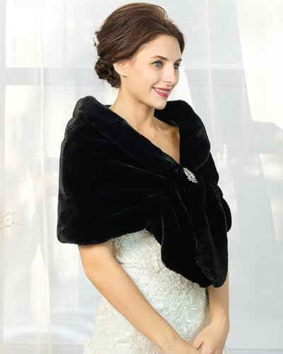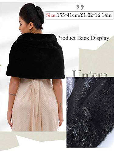 Unicra Sciarpa da donna in pelliccia sintetica marrone con scialli e involucri da sposa in finta pelliccia di volpe, per sposa e damigelle d'onore, Nero, Etichettalia unica