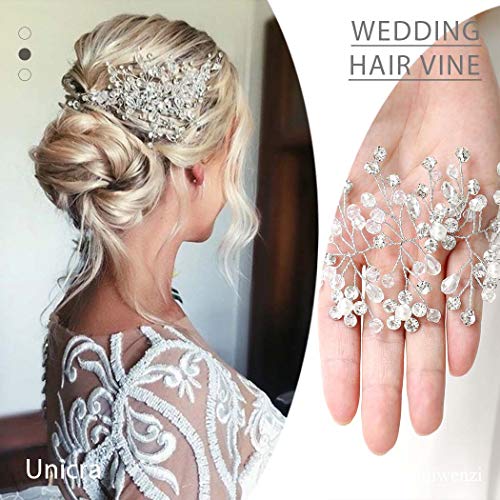 Unicra Silver Wedding Crystal Hair Vines Fiore Foglia Copricapo Accessori per capelli da sposa per la sposa