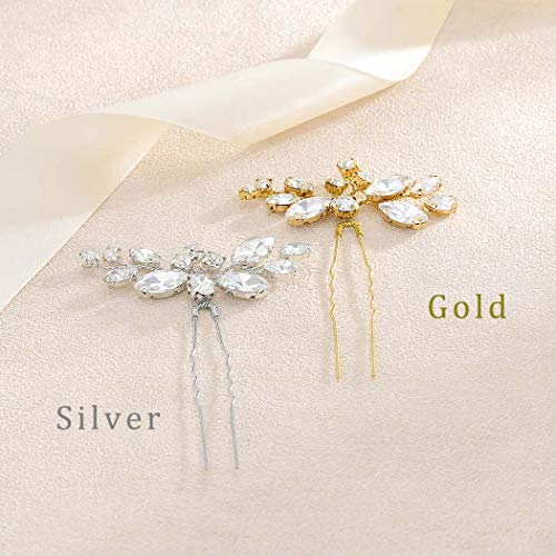 Unicra Sposa Matrimonio Cristallo Perni per capelli Fiore Accessori per capelli da sposa Accessori per capelli per donna e ragazza Confezione da 3 (oro) (argento)