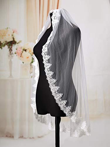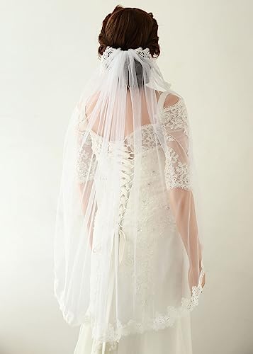 Unicra Velo da sposa in pizzo da sposa a 1 piano, lunghezza 78,7 cm, con pettine, accessori per capelli da sposa, colore bianco