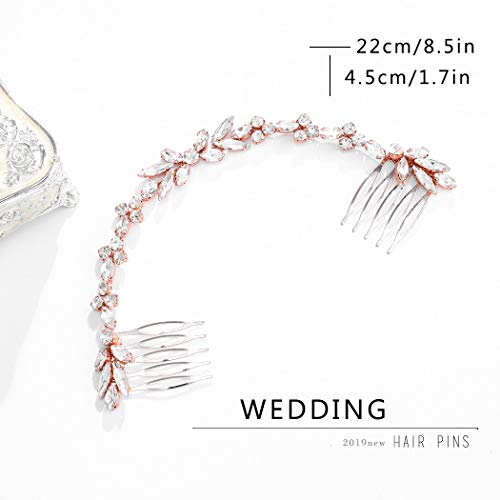Unicra Wedding Crystal Hair Combs Bridal Headpieces Accessori per capelli da sposa per le spose (Oro rosa)