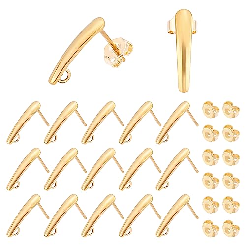 UNICRAFTALE 10pcs 304 Orecchino Ipoallergenico in Acciaio Inossidabile Orecchini A Bottone Dorati Componenti Orecchini A Perno per Orecchini Risultati per Creazione di Gioielli 15x3x1mm, Hole 2 mm