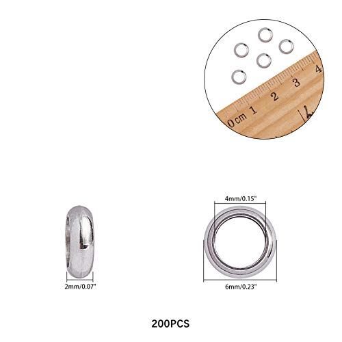 UNICRAFTALE 200pcs 6mm Anello Modello Perline Distanziatori Acciaio Inossidabile Perline Allentate Perline Distanziali con Foro Grande Perline Liscia Ricerca per Creazione di Gioielli, Hole 4 mm