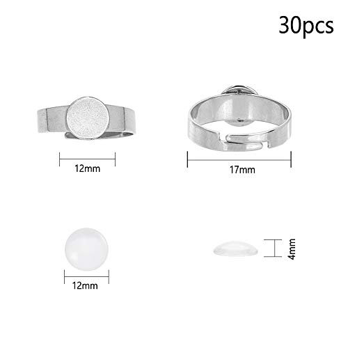UNICRAFTALE Anelli di Barretta Regolabili 60 pz Che Fanno Fai-da-Te, Anelli in Acciaio Inossidabile 30pz Componenti con Cabochon in Vetro 30pz (8 mm), Kit Spazi Vuoti Tondi Ad Anello