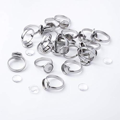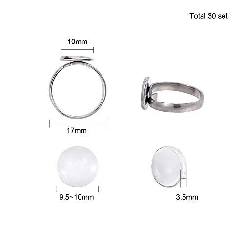 UNICRAFTALE 30 Set di Kit per Anelli Regolabili Fai-da-Te, Anelli Regolabili in Acciaio Inossidabile Componenti con Cabochon in Vetro Trasparente, Circa 10mm Risultati dei Componenti degli Anelli
