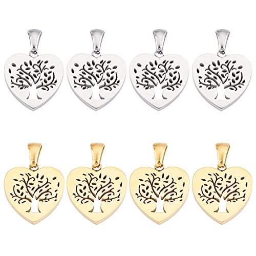 UNICRAFTALE Ciondolo con Design Cavo A Forma di Cuore 8pz, Ciondoli In Metallo per Lucidatura Manuale Cuore In Acciaio Inossidabile con Ciondoli Alberoa Vita per Collana Ciondolo Fai Da Te
