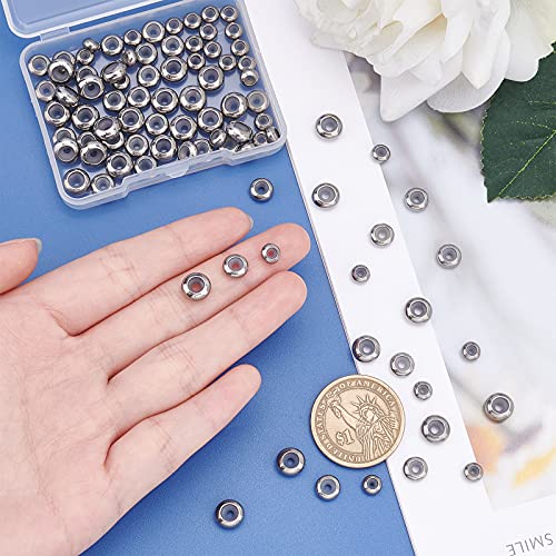 UNICRAFTALE Circa 90 pz 6/7/8mm Perline Stopper con Gomma all'Interno Perline in Metallo Slider Perline in Acciaio Inox Distanziatori per Monili Che Fanno Fai da Te Acciaio Inox Colore Foro 1.2-1.8mm