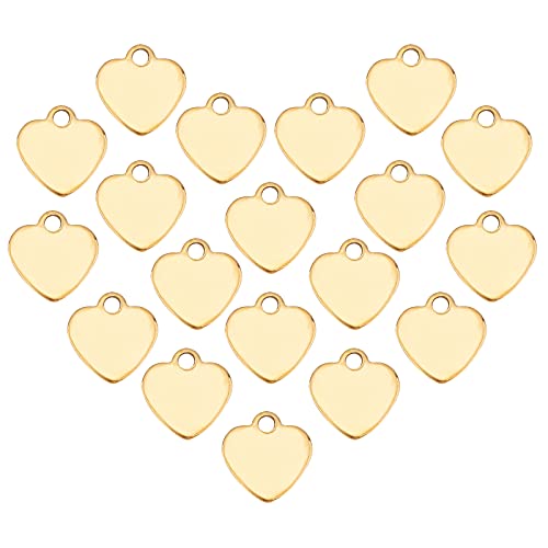 UNICRAFTALE Circa 50pz di Ciondoli A Forma di Cuore In Acciaio Inossidabile con Taglio Laser, Charms In Metallo con Tag In Bianco, Pendente Motivo A Cuore Goden per Ciondolo Collana e Orecchini