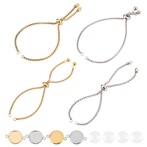 Catene di grande valore - Viene fornito con braccialetti scorrevoli da 4 pezzo lunghi circa 22 cm / 24 cm, 2 mm di larghezza, Foro: 2.5~3 mm, Connettore cabochon 4 pz vassoio da circa 12 mm, Cabochon in vetro 4 pz circa 11.5~12x4 mm. Quantità sufficiente per l'uso quotidiano.