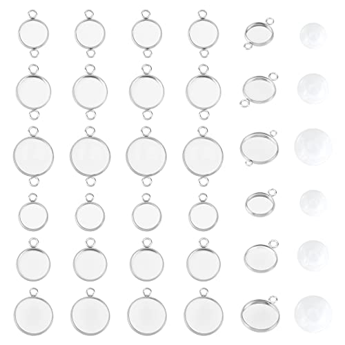 UNICRAFTALE Circa 120 pz Connettori Ciondolo Rotondo Piatto Acciaio Inossidabile Lunetta Vuota Vassoi Ciondoli Cabochon Pendenti con Cabochon In Vetro Trasparente per Creazione di Gioielli 10-14mm
