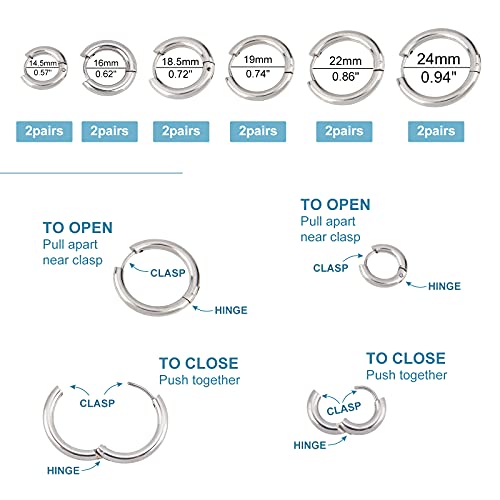 UNICRAFTALE Circa 24 pz 6 Dimensioni 14.5-24mm Anello Huggie Orecchini A Cerchio Orecchini A Cerchio in Acciaio Inossidabile Orecchino Rotondo Ipoallergenico per Le Donne