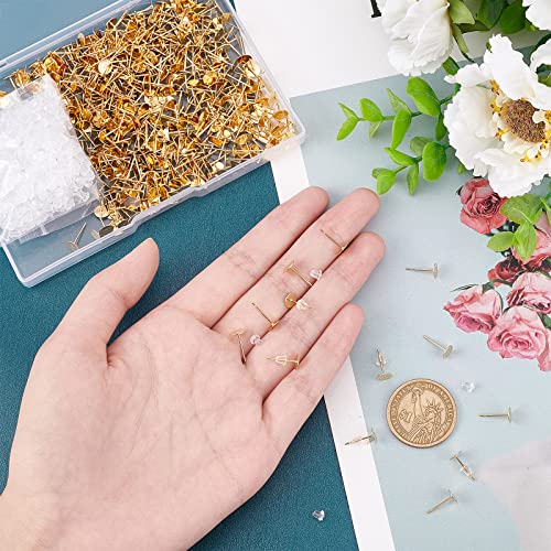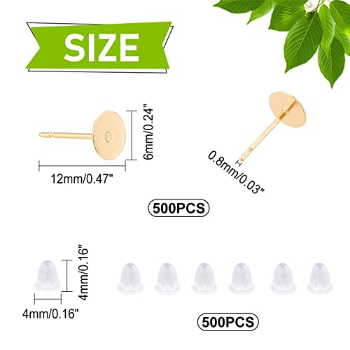 UNICRAFTALE Circa 500 Pezzo di Risultati'Orecchino A Bottone Dorato con 500 Pezzi di Dadi per Orecchie in Plastica 304 Orecchini A Bottone Piatto in Acciaio Inossidabile per Orecchini in Metallo