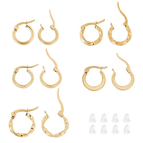 UNICRAFTALE Circa 40 pz 5 Stili Anello Piatto/Anello/Anello con Punte/Orecchini A Cerchio A Forma di Anello Orecchino A Cerchio in Acciaio Inossidabile e Dadi in Plastica per Orecchino, Oro