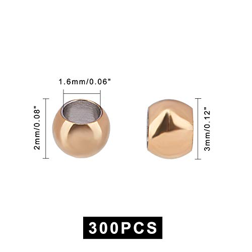 UNICRAFTALE Circa 300 pz 3 mm Oro Tondo Perline di Metallo Perline Distanziali Perline in Acciaio Inossidabile 1.6 mm Foro Perline Allentate Perline Distanziali per Fabbricazione di Gioielli