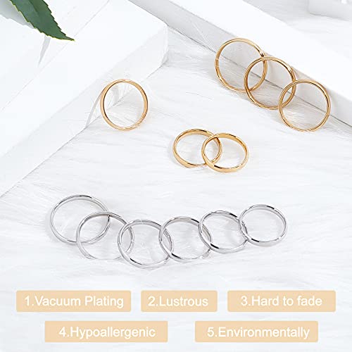 Anelli a fascia piatta a 2 colore: l'anello di misura 10 include il colore oro e acciaio inossidabile. Ci sono 6 pz in ogni colore, un totale di 12 pz, può essere abbinato a diversi stili di abbigliamento.