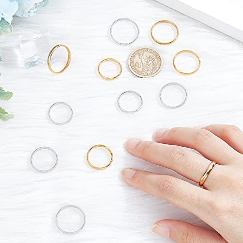UNICRAFTALE 12pz 2 Colori 20mm Anelli A Fascia Piatta in Acciaio Inossidabile, Anello da Dito in Metallo Misura 10, Set di Anelli di Moda Tono Oro/Acciaio Inossidabile per Uomo e Donna