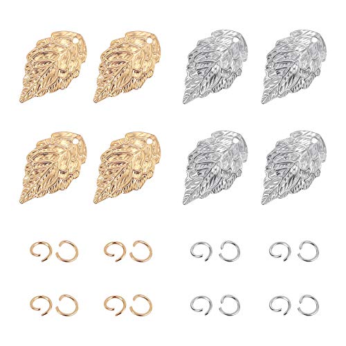 UNICRAFTALE 80 pz 2 Colori Ciondoli con Motivo A Foglia 304 ciondoli in Acciaio Inossidabile con Anelli di Salto Ciondoli in Foglia di Colore Oro E Acciaio Inossidabile, Hole 1 mm