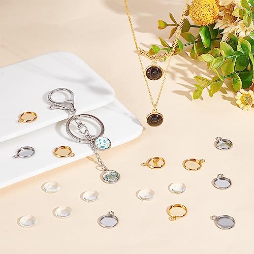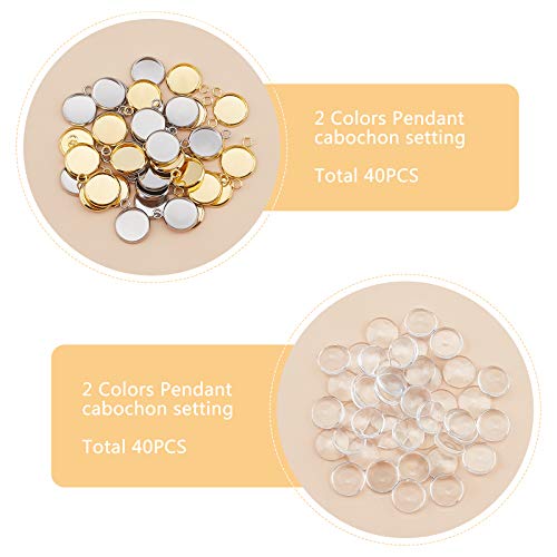 UNICRAFTALE 40 Set 2 Colori 12mm Piatto Rotondo Vassoio Pendenti Che Fanno Kit 304 Ciondolo in Acciaio Inossidabile Impostazioni Cabochon E Cabochon in Vetro Trasparente per Creazione di Gioielli